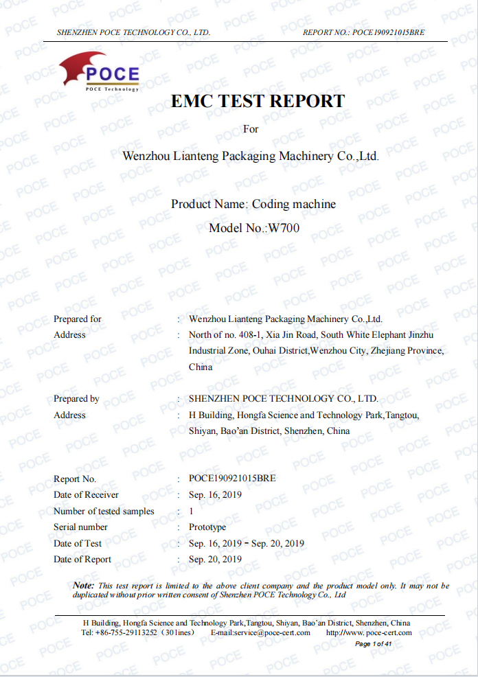 CE-EMC报告 打码机